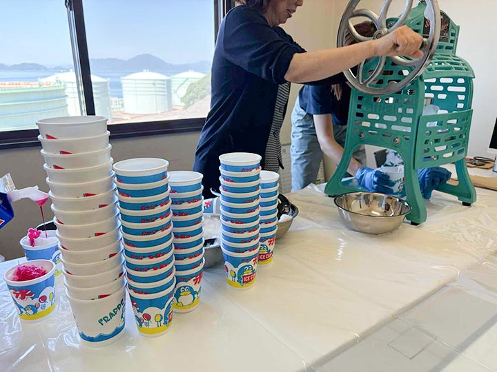 訓練後には、従業員の熱中症対策の一環として「かき氷」でクールダウンしました。